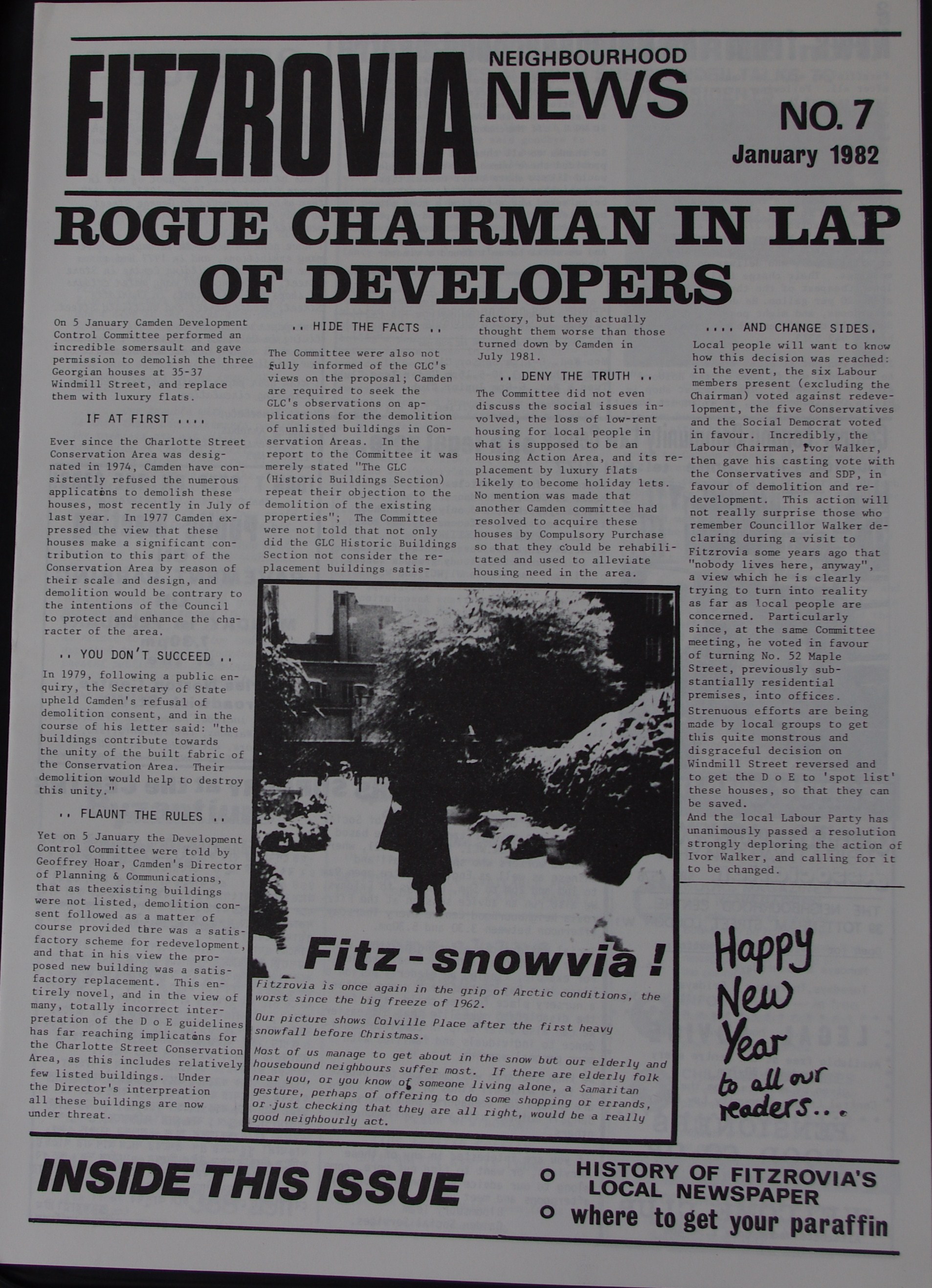 Front Page Fitzrovia Neighbourhood News no 7 January 1982