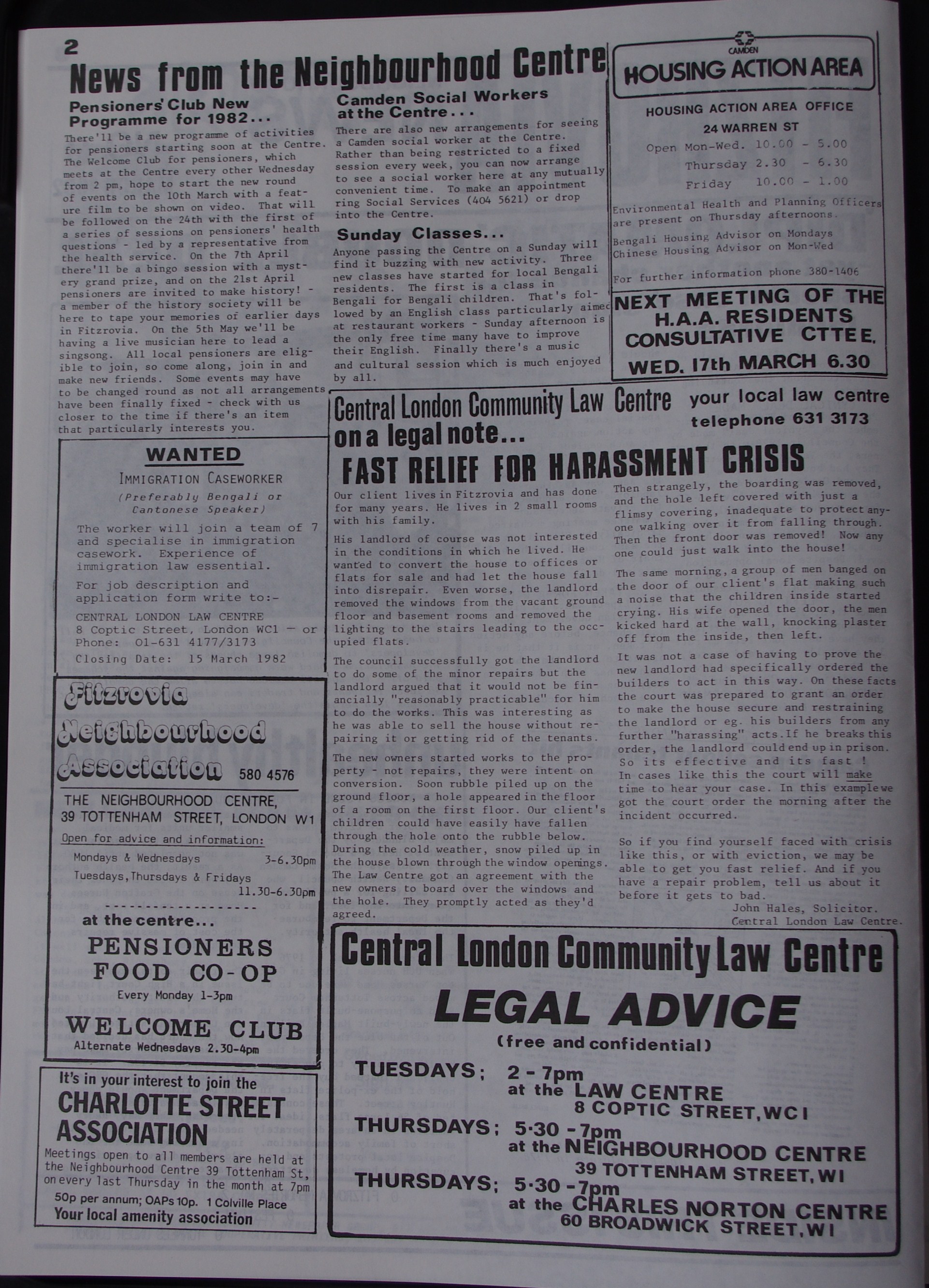 Page 2 Fitzrovia Neighbourhood News no 8 March 1982