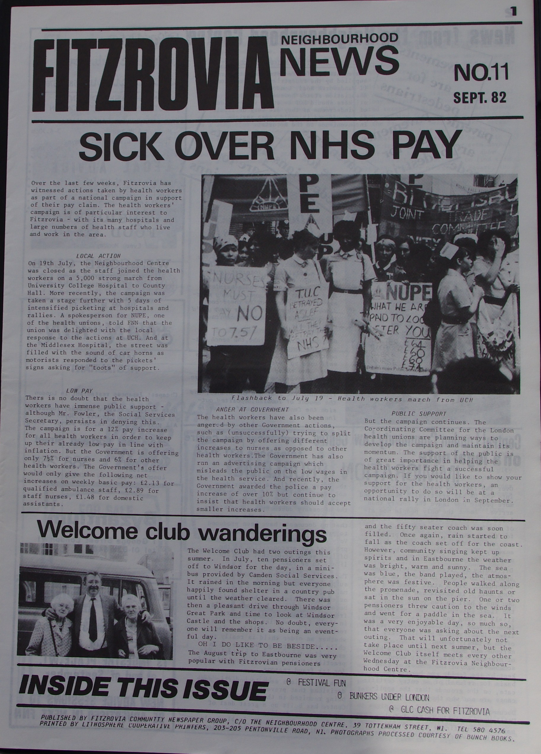 Front Page Fitzrovia Neighbourhood News no 11 September 1982