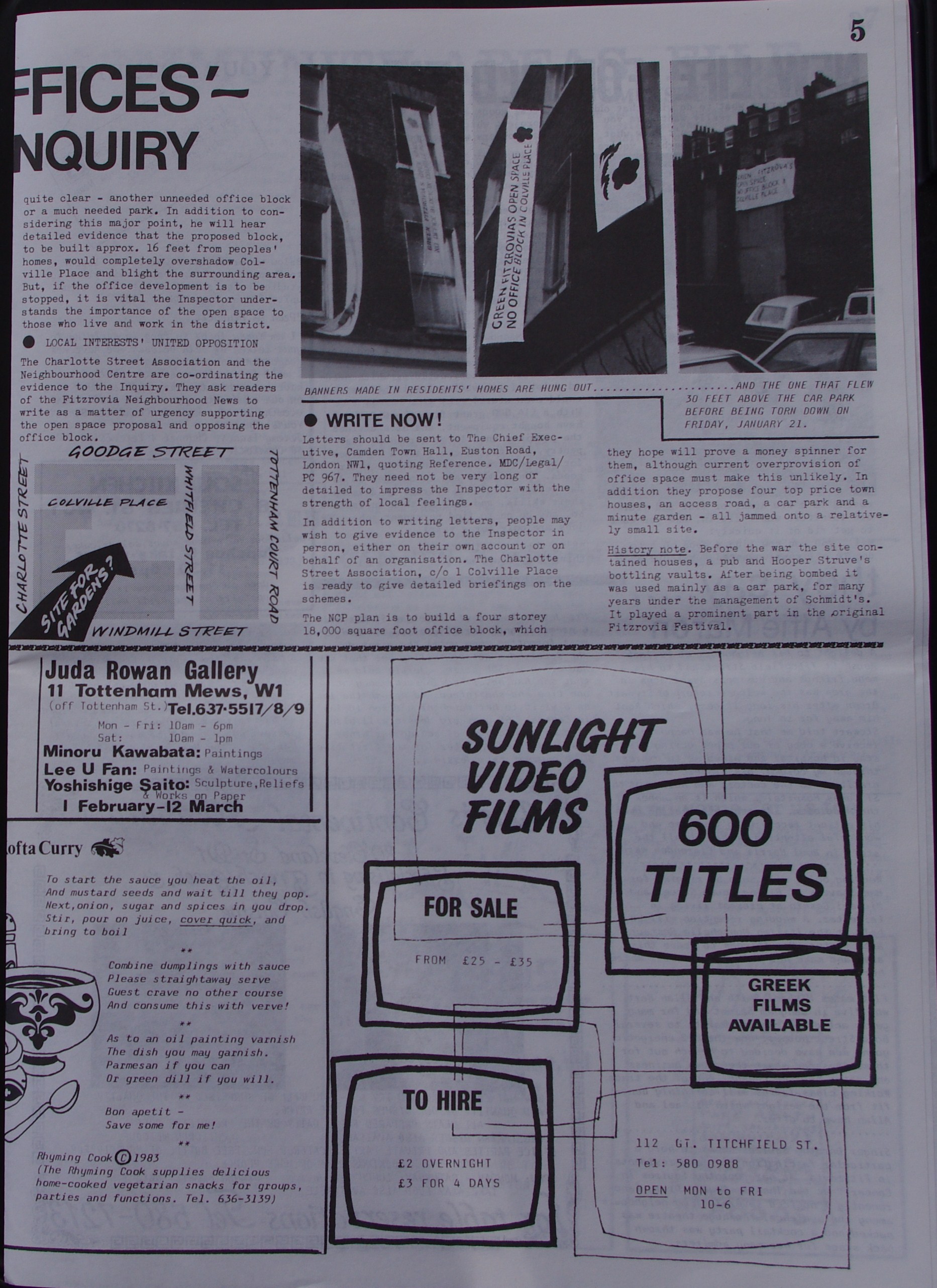The fight is on to save Colville Place from inheriting another office block. With just two weeks to go before the public inquiry which will decide between the needs of local people versus the greed of big business.