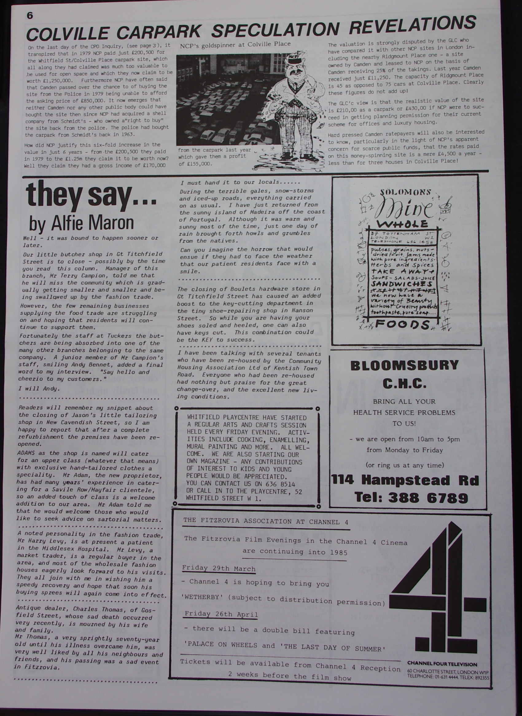 Page 6 Fitzrovia Neighbourhood News no 23 March 1985