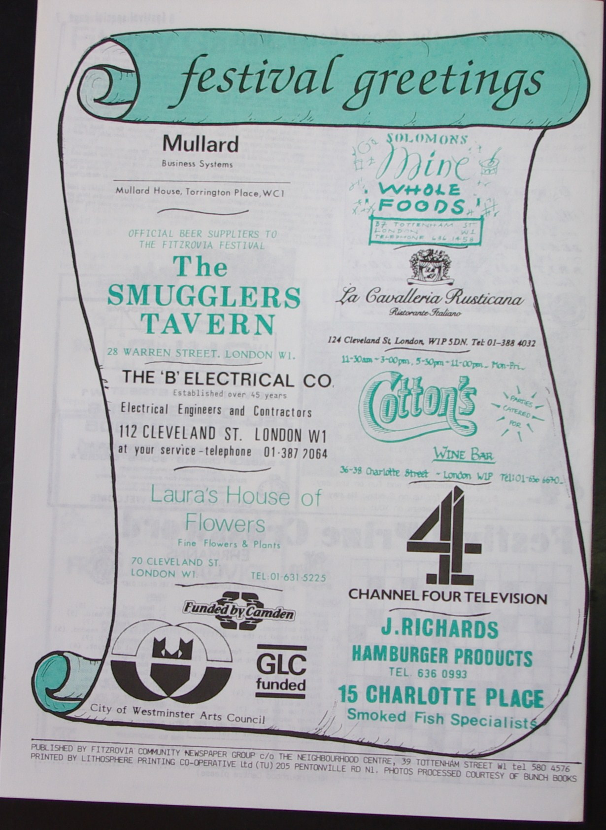 Front Page: Fitzrovia Festival 1985 special issue.