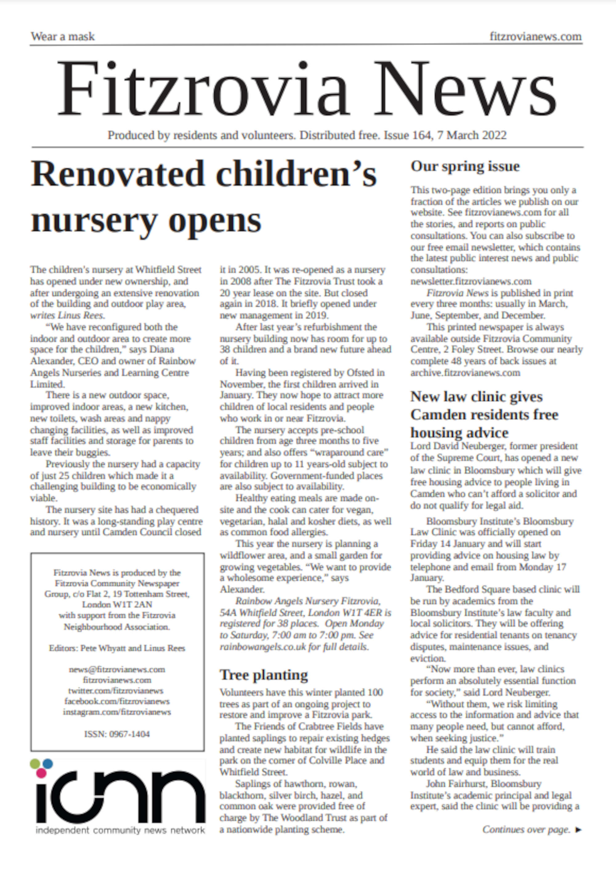 Fitzrovia News number 164, published Monday 7 March 2022.